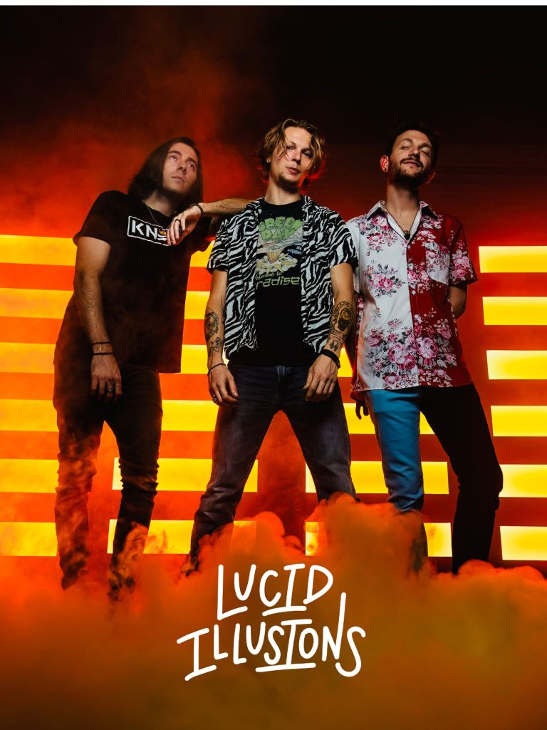 The lore says Lucid Illusions formed in 2017 when Jordan Lane (guitar, lead vocals, commanding frontman and shredding guitarist) met Donovan Hanson (drums, wild man with kick-start-my-heart energy). Conner Graham (limber bass lines, vocals, instinctive crowd-connector) joined in 2019, rounding out the trio.